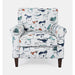 Fun abounds with the Baxter chair. The adorable puppy fabric, with pops of beautiful color, is the must have stylish addition to your space. Features a removeable/reversible seat cushion and rolled arms.