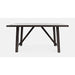Farmhouse inspired with a modern twist, this 72" trestle styled dining table provides seating for six comfortably.  The slatback chairs and bench with upholstery and nailhead trim add to this collections charm.