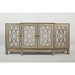 Jofran's Casa Bella Collection makes quite the statement with vintage Hollywood style. Intricate molding over mirrored doors makes each of these pieces a dramatic accent. This case features breakfront detailing, four doors (one double door cabinet separate from single door cabinets on the ends), fixed shelving, and wire management.