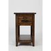 With an air of industrial history, Jofran's Cannon Valley Collection is a beautiful tribute to the past while maintaining a distinctly contemporary feel. This chairside table features a drawer and shelf.