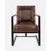 A dramatic profile, with a mix of materials, all comes together to make Jofran's Maguire chair. The chair sits on a sleek iron frame and includes rich design details in the leather upholstery. Form and function come together in this sleek chair.