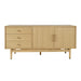 The Olson console, available in light oak and walnut, features a versatile design with a multi-functional drawer. Perfect as a TV cabinet, accent piece, credenza, or server, it blends mid-century and Scandinavian styles for a timeless look.