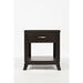Easy curves and subtle style make Jofran's Downton occasional collection a natural fit for any decor. The tables feature sturdy construction and a rich finish with brushed nickel hardware. This end table features one drawer and one shelf.