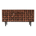 Elevate your living area with the enchanting and versatile appeal of this essential Woven Front Accent Cabinet. This cabinet showcases intricate woven patterns. Its warm, welcoming finish accentuates the inherent beauty of the Mango wood, transforming it into a sophisticated addition to any room. In addition to its exquisite aesthetics, the cabinet offers substantial storage capacity, making it practical and beautiful.